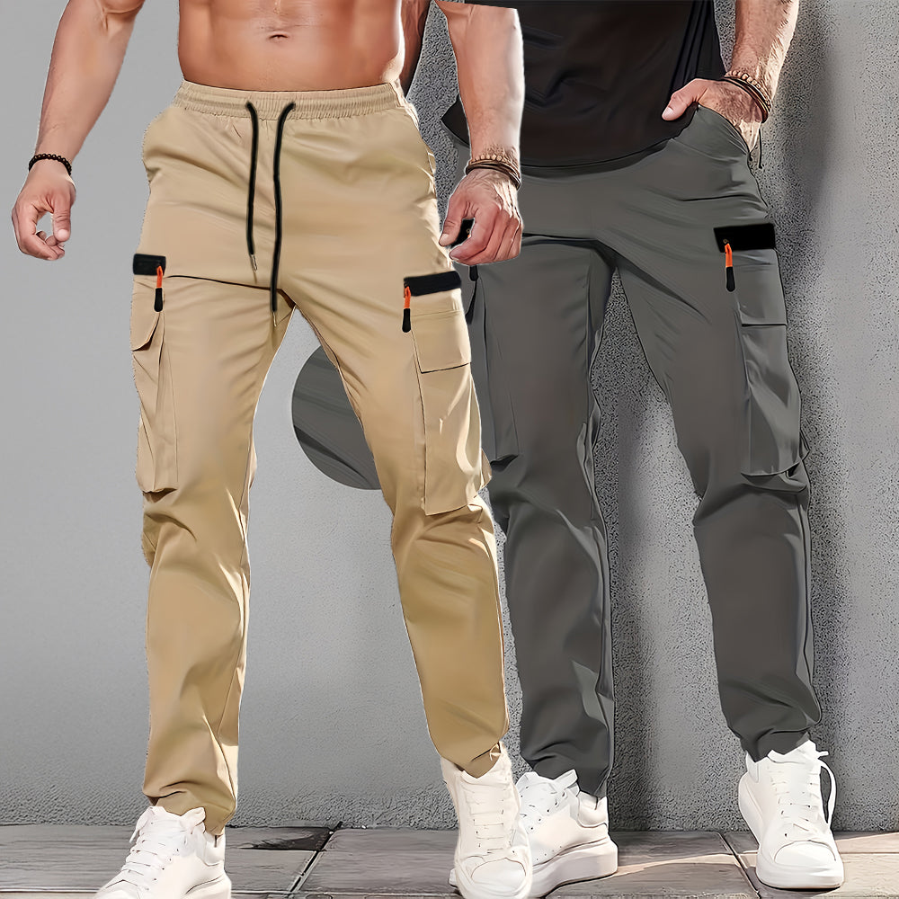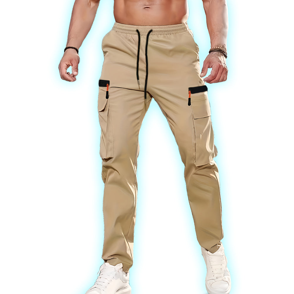 Crafted for versatility and style, these cargo joggers blend sleek design with rugged functionality. Multiple pockets with bold accents enhance utility, perfect for on-the-go convenience without compromising aesthetics.
