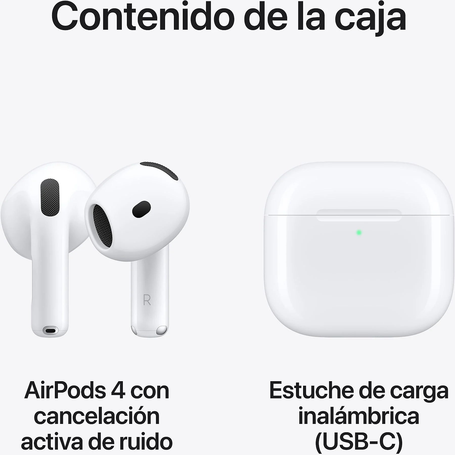 Apple AirPods 4 con Cancelación Activa de Ruido (2024 4ª gen), Inalámbricos, Bluetooth®