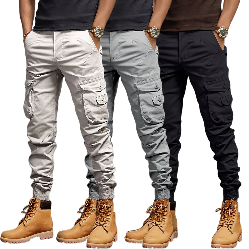 Tailored cargo joggers designed to bring a modern twist to rugged functionality. Crafted with a sleek silhouette and featuring multiple buttoned pockets, they balance utility with refined style. The elasticized cuffs offer a secure fit, perfectly complementing boots or sneakers for a versatile look.