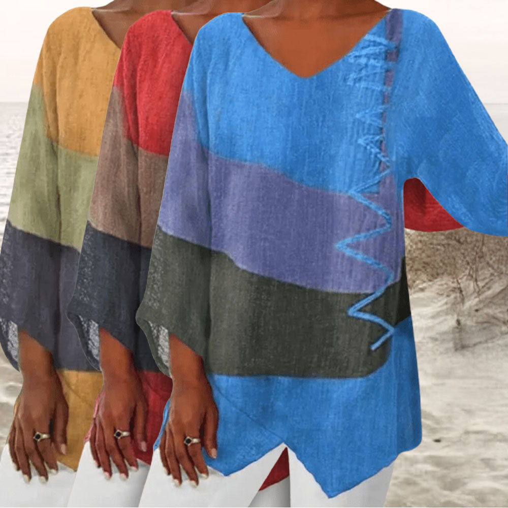 Crafted for the soul that seeks rhythm in simplicity, this artistic blouse flows like a breeze through open shores. Hand-cut asymmetry meets bold stitch-play and tonal panels, creating movement, texture, and quiet drama. An effortless statement—where comfort meets creativity, and every thread tells a story