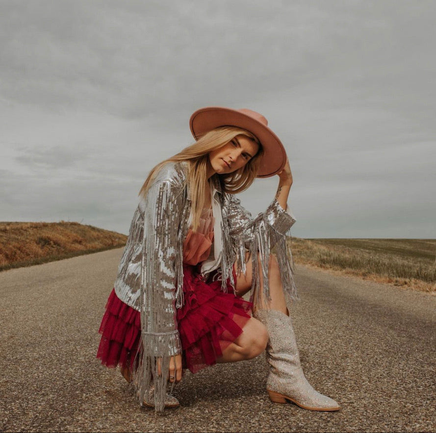 Our sequined jacket is a dazzling and eye-catching outerwear piece that is designed to make a bold fashion statement. The jacket is made from a lightweight and flexible polyester material and features sequins that are sewn onto the fabric. One-of-a kind design that gets better with age instead of worse.